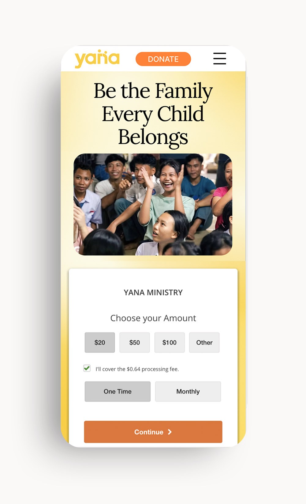 Integrated donation form above the fold = friction-free conversion
